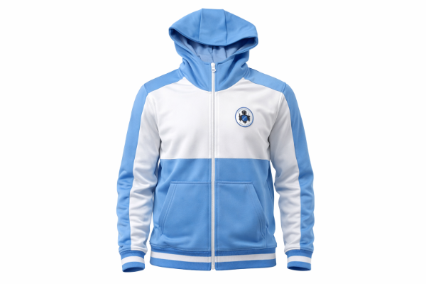 Campera Bicolor con cierre, bolsillos, capucha.